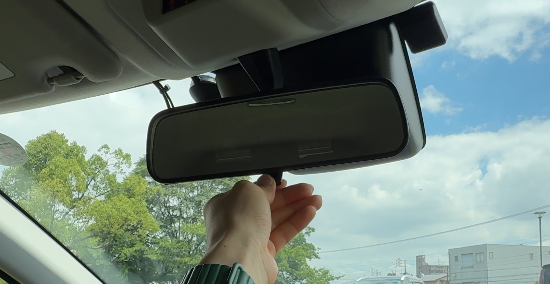 中央のレバーを手前に引くと防眩ミラーに切り替わります。