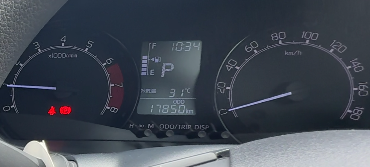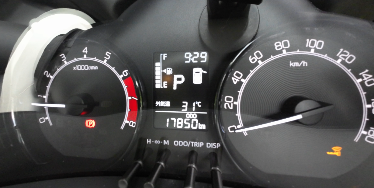 中央の液晶画面には時計、ガソリン残量、シフト、オドトリップが表示されます。