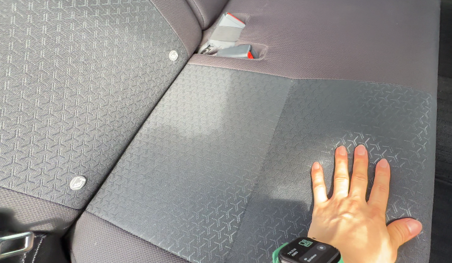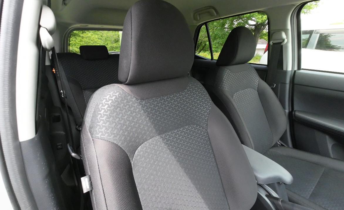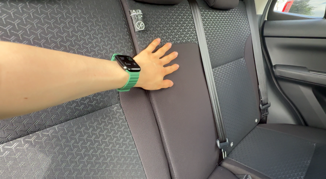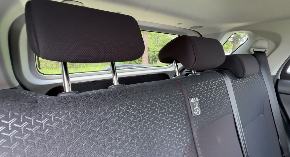 後席シートは、前席と同じようにファブリック素材で、中央は柄のあるデザインです。
