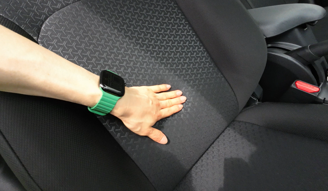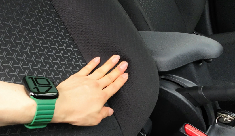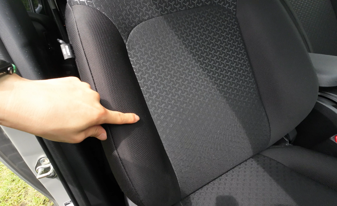 フロントシートはファブリック素材で、内側には特徴的な柄が施されています。
