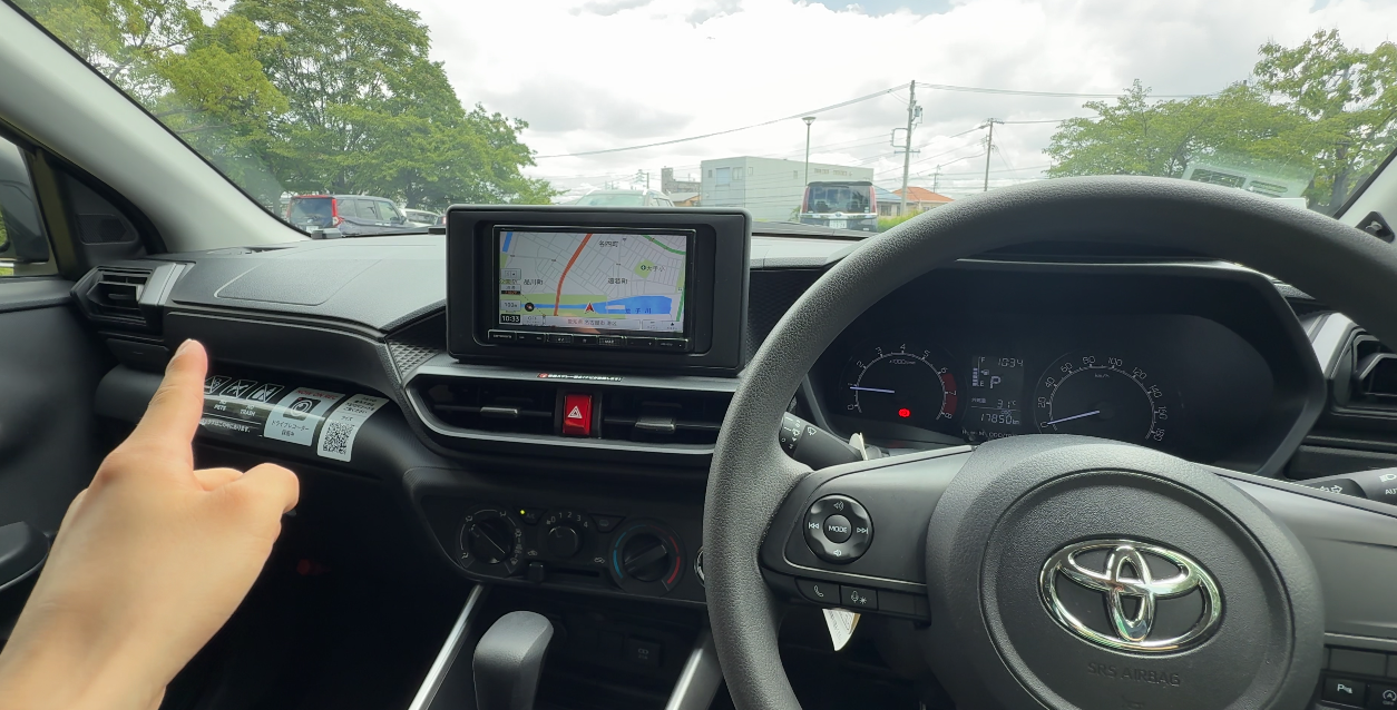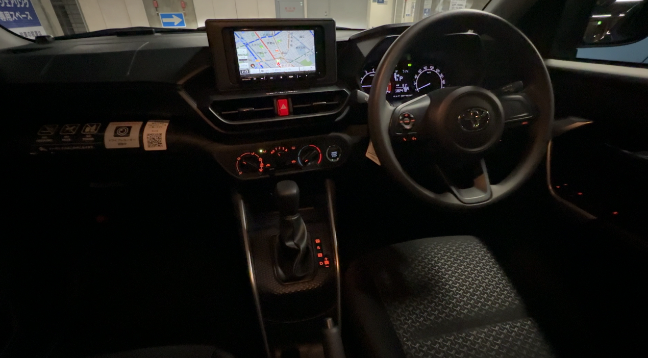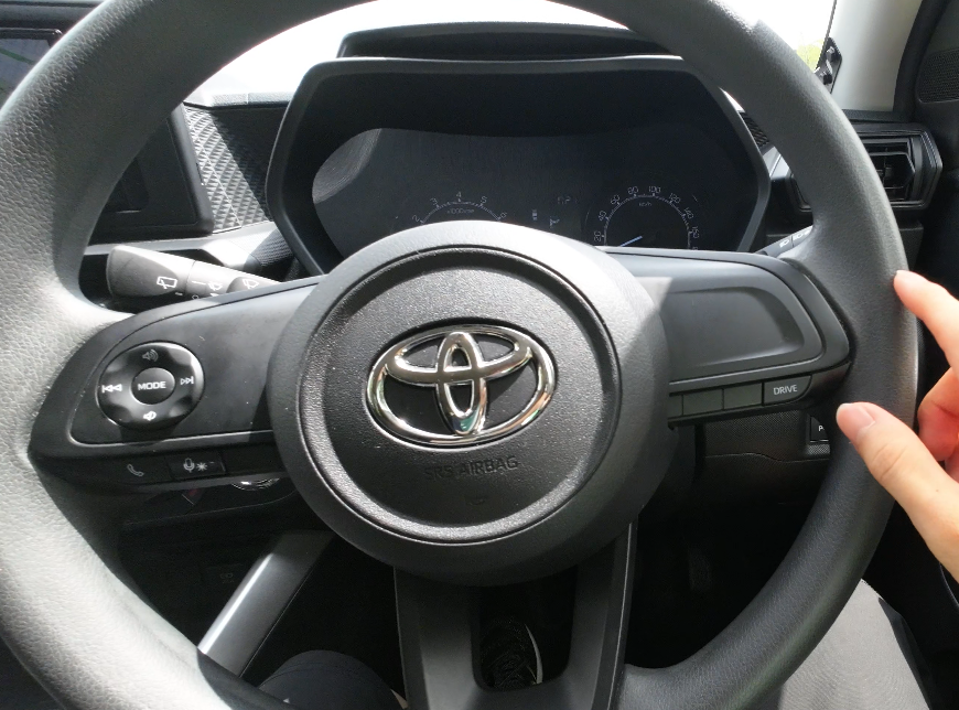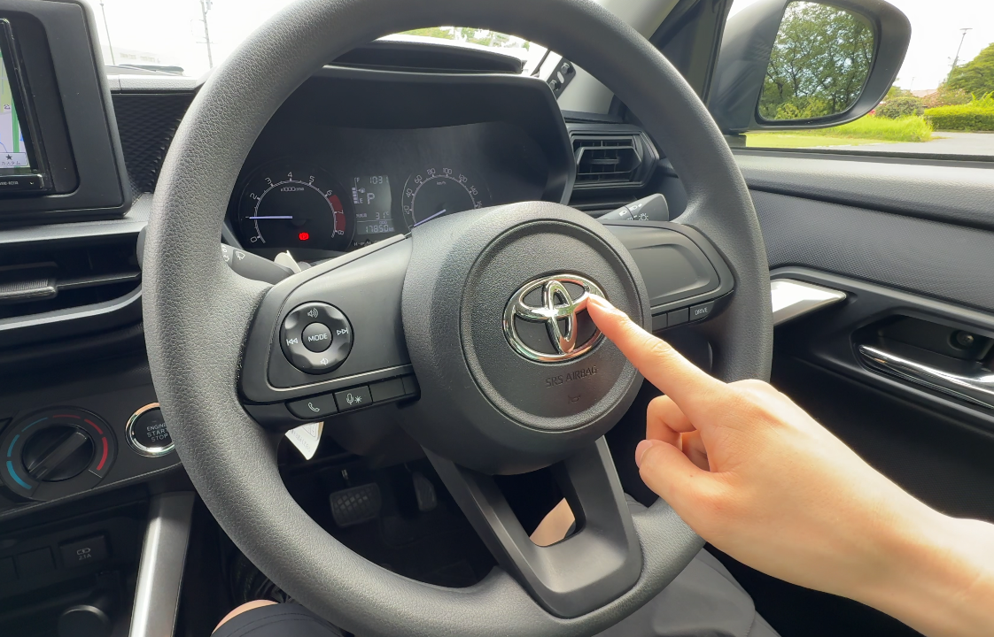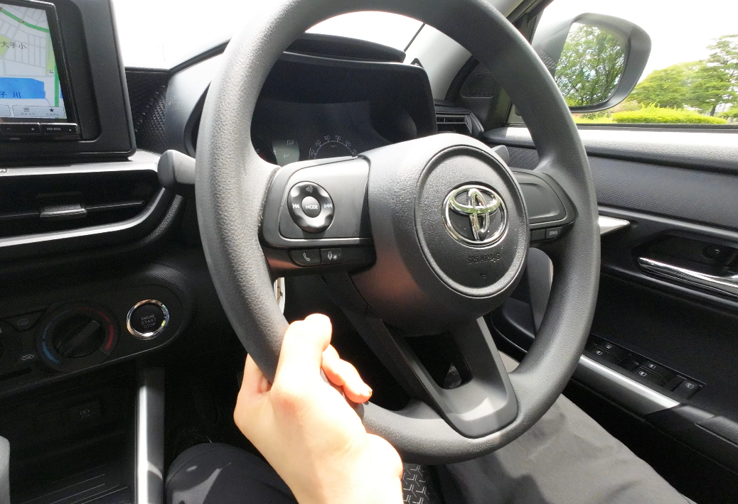 ステアリングはウレタン素材で、トヨタエンブレム以外にメッキ加飾はありません。