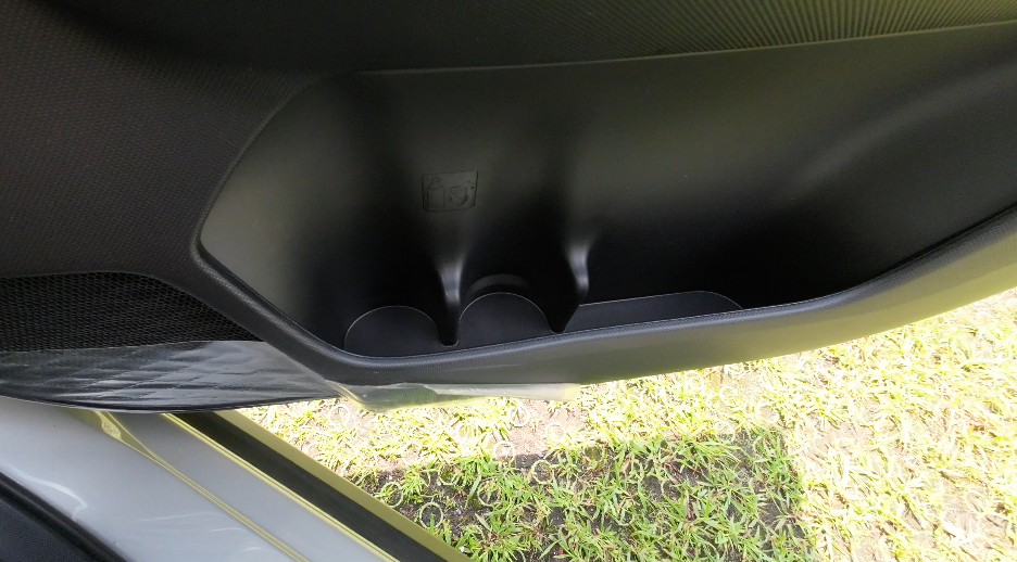 前席ドア内側には、ペットボトルが収納可能なドリンクホルダーが2本分と小物入れがあります。
