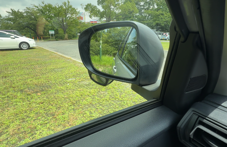 ルームミラーからの視界は、リアガラスが立っているので見やすく、ルームミラーのサイズ感も十分です。