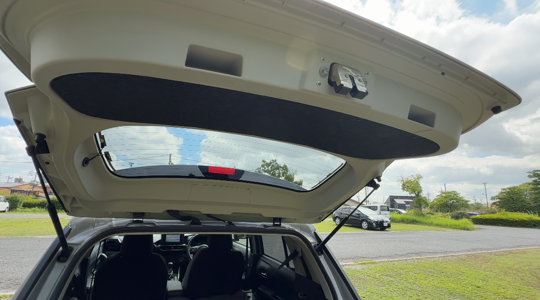ハッチのドアにはリアバンパー上部から繋がるプレスラインが施されています。