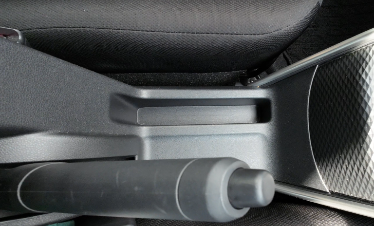 サイドブレーキの左側には、スマートフォンが収納できる浅めの縦長ポケットがあります。