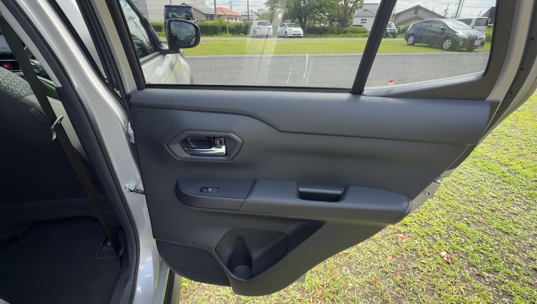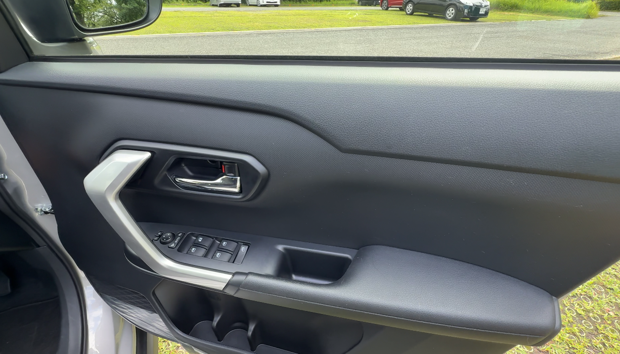 ドア内側は全体的に樹脂パーツで、ドアレバーはメッキ仕上げです。
