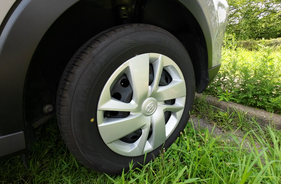 タイヤはダンロップのエナセーブ(195/65R16)で、ホイールにはキャップが装着されています。