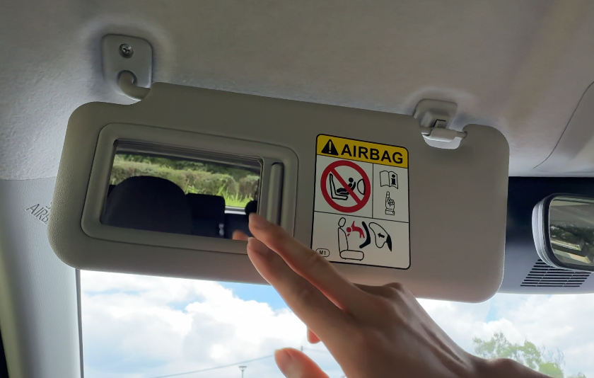 運転席のサンバイザーにはチケットホルダーと鏡が用意されていますが、ライトはありません。
