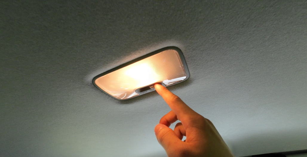 後席の天井にはライトが用意され、豆球でオンオフドア連動の切り替えが可能です。