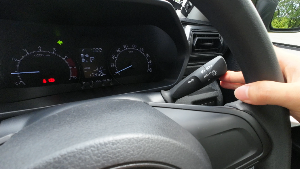 ライトスイッチはオートライトで、手前側に回すと一時的にオフにできます。