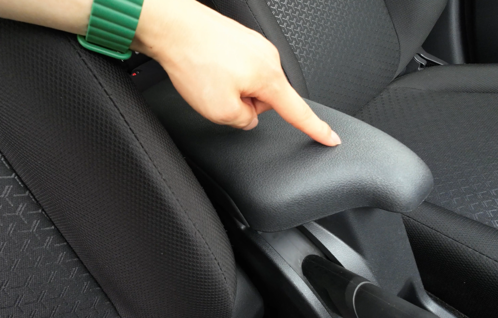 中央のアームレストはハードプラスチック素材で、前後のスライドはできません。
