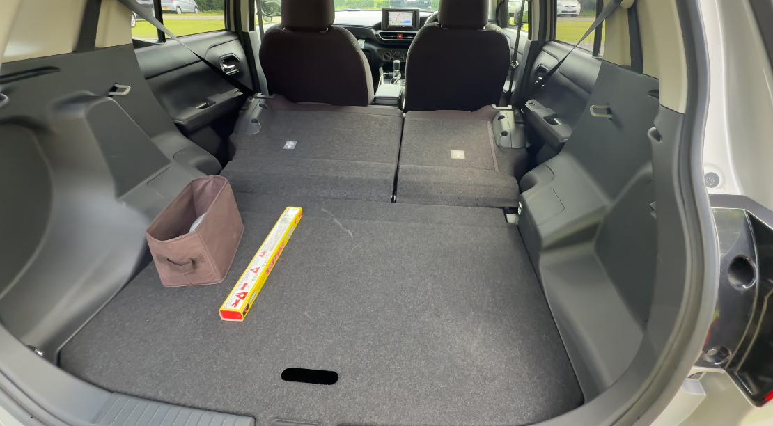 後席を前に倒すと、荷室全体の容量はかなり広くなります。