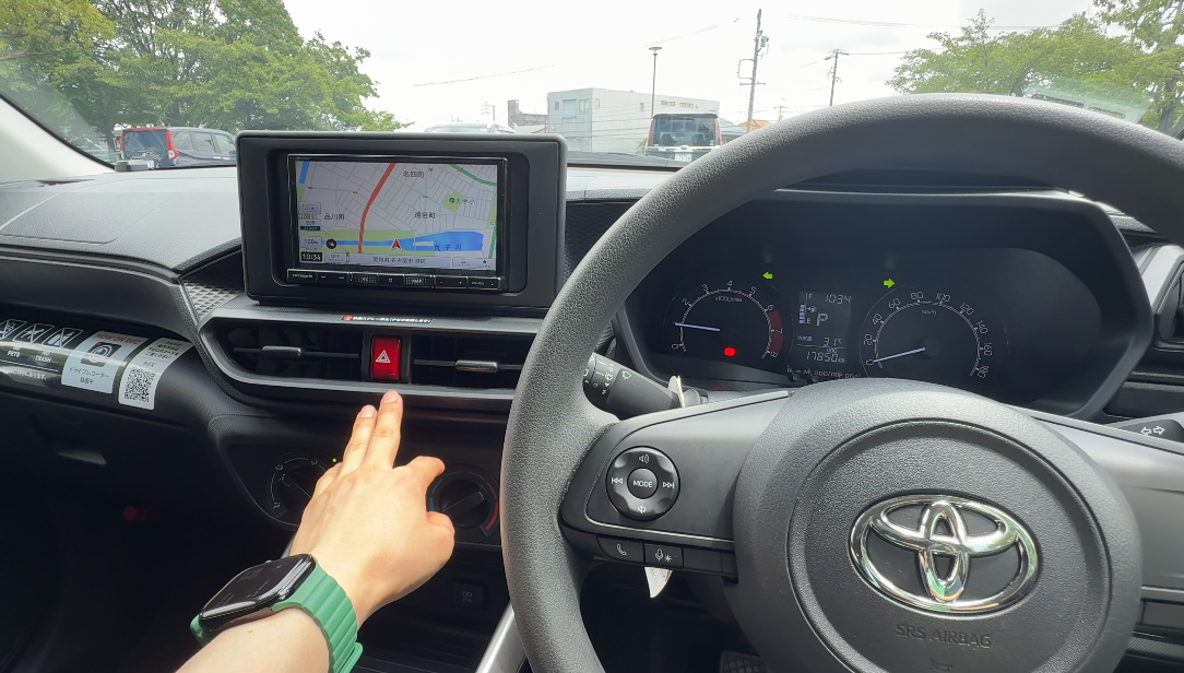 ハザードスイッチはナビの真横にあり、赤色で艶感があり、質感が高い印象です。