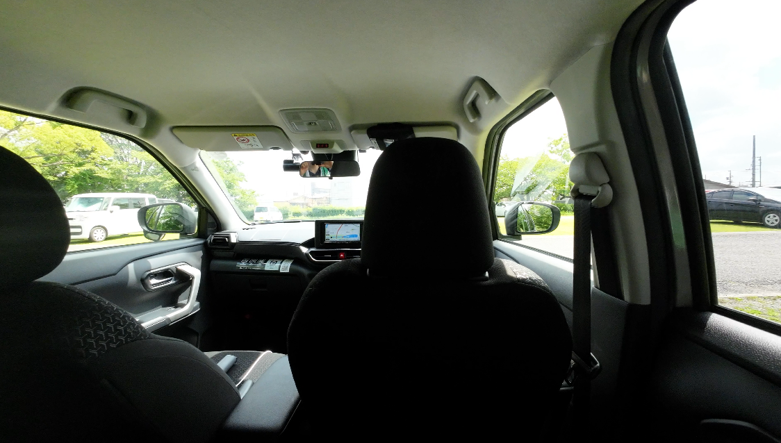 前方視界は、前席のシートが特に盛り上がっているわけではないので、全体的に広めです。室内も明るい印象です。