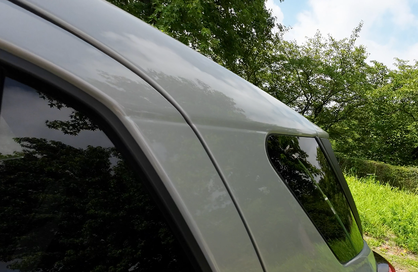 リアのデザインは、後方のガラスとリアガラスの境目が黒色になっているため、窓ガラスが大きく見えるのが特徴。