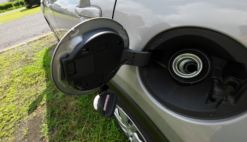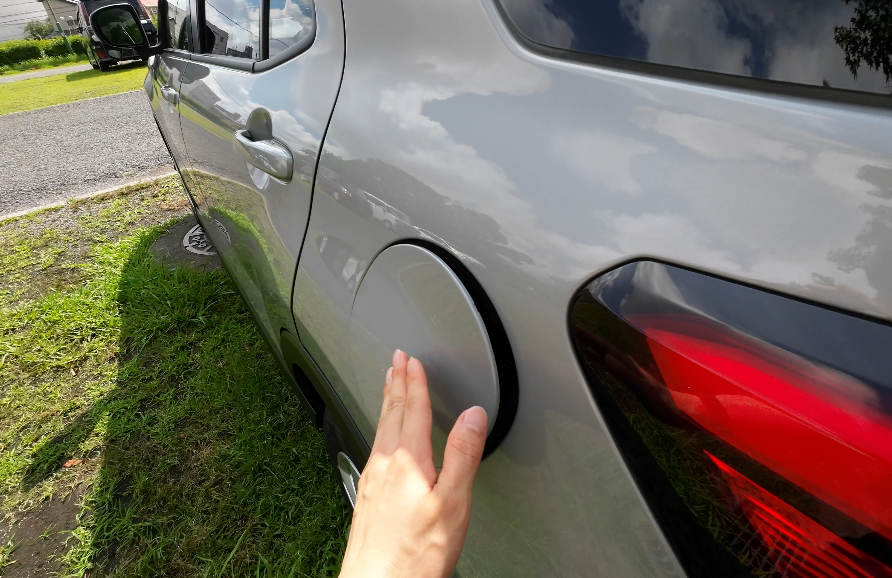 給油口は、鍵が開いている状態であればワンタッチで開けられます。