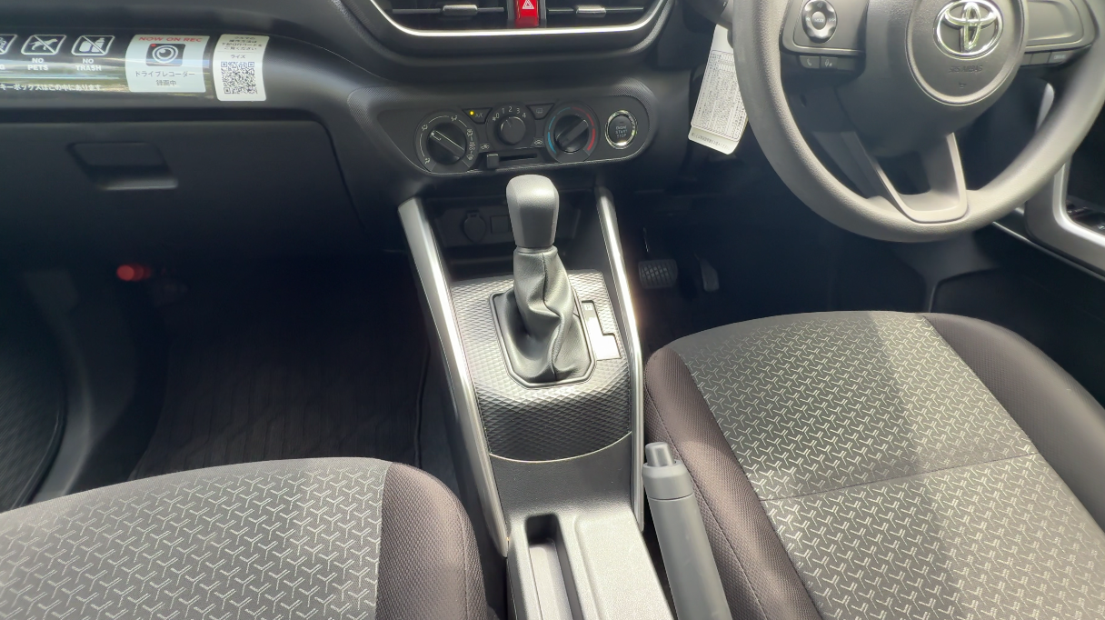 ライズ (Xグレード) は、エアコンがダイヤル式、シフトレバーはストレート式、サイドブレーキはハンドブレーキ式と、直感的な操作が可能なため、普段運転しない方でも扱いやすいでしょう。