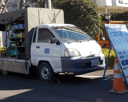 団地の前の道路で、ガス工事中。見慣れた道の下の見慣れない景色が新鮮だ!