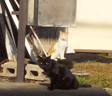 ここはちょっと前まで“猫温泉”があったところです。新ニャン大繁盛の猫温泉そして手前のふたりは新ニャンの両親かも。