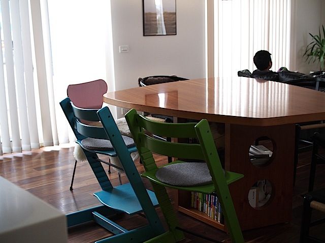 子供部屋に置いていたシェルチェアをダイニングに移動させました。