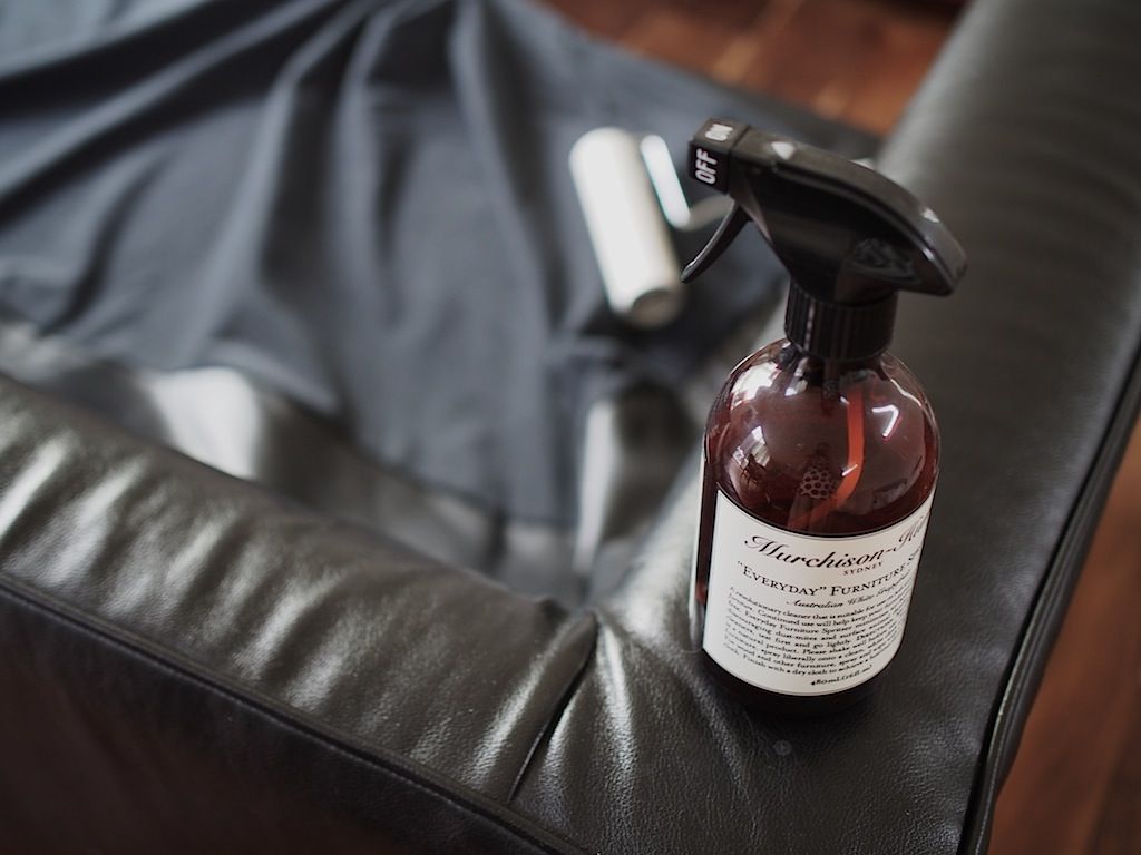 合皮部分に吹きかけ、乾いた布でふきとり・・・