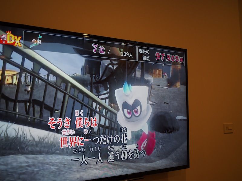 お歌のレッスンをということでスイッチでカラオケをしました。