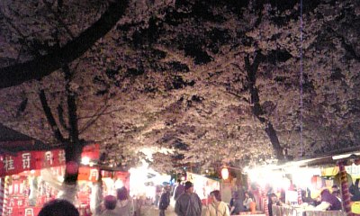 赴任先から戻ってきた主人が「さくらが見たい」と言ったので二人で夜桜を見に出かけました。子供たちは、もうついてきませんいつのまにか、夜も軽いトレンチで歩けるくらいの暖かさになっていたんですね。平野神社はさすがに満開でした。 さくらの下にはたくさんのお花見客。この平野神社は主人も私も学生時代それぞれによく来た場所。いつもひっそりしているこの森が一年に一度、この季節だけにぎやかになるとなんだかよそ者のような気がします。それでも大鳥居をくぐったところにこの時期だけでなく普段からでているたこ焼きを十年ぶりくらいに二人でつつきました。懐かしい味は変わってなくてそんな味をちゃんと覚えていたことにちょっと嬉しい感動でした。