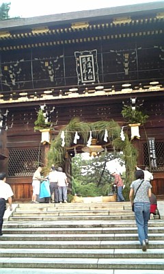25日の天神さんには京都で最大となる茅の輪が作られます。と言っても、午前5時の開門から門の茅の輪を作っている茅は次々に抜かれていきます。昔から(?)の慣習で門の茅を持って帰って小さな茅の輪を作りそれぞれのお家を守る茅の輪となるのです。毎年4時半起きで茅をもらいに行くことが私の夏を迎える行事のひとつとなっています。今年は前日の大雨で早朝の新しい空気がとても澄んでいました。雨粒がいっぱいで重たそうな葉っぱたちの生き生きとした気配がそこらじゅうにありました。 先に茅を確保してから本殿の取ってはいけないほうの(笑)茅の輪をしきたりどおりにくぐり、 この半年の穢れを落としました。あと半年、今年の終わりまで平穏でいられますように夏の大病をしませんように。 くぐり終わるとなんとなくすっきりした気分になって帰路に着きました。朝早くと言えども沿道では天神さんの縁日の用意が手際よく行われ活気づいていました。新鮮な酸素、たたずむ緑との静と人々の活気の動がとてもバランスよく朝の空気の中に溶けていてここをこうして歩くことがとても嬉しくて早起きしてよかったという気持ちになります。今年は初めて知人に会いました。こうして私はここへ毎年やってきて年々、挨拶をする人が増えて歳をとっていくんだろうなって思いました。帰ってこんな茅の輪が作りました
