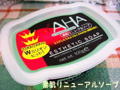毎日同じ言葉だけどほんと暑いですよね~今日はめずらしく食べ物じゃないレポ。午前中に汗をかいてしまうのでお掃除が終わるとまずはシャワーを浴びてしまうのですが←今日はこの石鹸が届いたので早速さきほどお風呂で使ってみました。AHA クレンジングリサーチ 素肌リニューアルソープなんでもエステをした後のような肌なんていう言葉に心ひかれて買ってしまった♪綺麗なクリアグリーンのソープはまるでメロンゼリーのようなのですが泡立ててみるとそれはそれはネットリとした泡がもこもことできます。それで顔を丁寧に洗い、流してみたら・・・おやなんだか触ってみたらとてもやわらかい肌に。角質が取れちゃった感じですごくさっぱりつるつるです泡をつけて洗ったら2・3分泡をのせたままにしておくともっと効果があるそうです。あまり長くつけているとぴりぴりするのが怖いのでほどほどで洗い流しましたけど少し慣れたらもうちょっと放置してみようかな。やっぱり海外のものは刺激が強いように思い使うのが怖かったんです。でも想像してたよりはやさしい感じがしました。青リンゴの香りがとても爽やかなんですが泡が顔についている時は鼻に近いためかちょっときつい気がします。角質ケア成分フルーツ酸配合です。顔だけじゃなく、全身につかえますよ~。爽快ドラッグさんで購入。3,000円以上お買いもので送料無料デス。+ + + + + + + + + + + + + + + + + + + + + + + + + + + + + +おまけ完全にねらっております。1個目の日記は新規開店共同購入!送料無料デス。