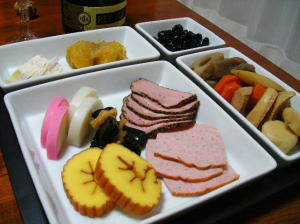 これも恒例になりつつあるっ。今年のおせちレポでございます。あ、、、ただいま♪今回注文した博多久松のおせちです色合いがとても綺麗でございますねー。まずは一の重。黒豆がとてもふっくらと煮えてました。大きな粒で立派でした。栗きんとんもやさしい味でしたが栗が小さかったー。真ん中のオマールは父がほじくって食べてました(笑)キラキラした包みのものは紅白の小さなお餅なの。ここのおせちはひとつひとつ見た目がかわいいです。次は二の重。正直に言うね。煮物は味が濃くて水っぽかった。伊達巻は小さめで甘すぎないタイプだった。手羽に明太子が詰まっているものや卵チーズカステラなんていうものもあってそのあたり九州っぽさが出てるなと感じました。この重のものはあまり食べてないんだよ・・・最後に三の重。ここでは鴨肉が目立っていたわー。1番に食べてみたけどやわらかくて美味しかったです。棒ダラは母が食べていたけど・・・「しょっぱい」と言ってました。味の濃いものとそうでもないものがあるんですよねえ。小さなかわいい甘い系がちょこっとずつ入ってますね。お餅であんを包んだもの。綺麗な和紙に包まれたものは栗絞りでした。きんとんよりコッチの方が美味かった。笑手毬みたいなお花もお菓子です。全体的に細かくて、種類が豊富でした。これはなんだろう~~って突っついて楽しかったですね。味は・・・うーん。美味しいものとそうでないものも。ですので自信を持ってオススメできるかどうかは微妙。ワタシと家族の意見ですが・・・味で言うと去年の方が良かったという結論に達しました。これが去年のおせちサンライズファームさんのでした。ハムやさんなんでハム系が美味しいんですよねえ・・ココは。単なる肉好き家族なのか・・・・来年はまた違うところにしてみようよ。って>母めちゃめちゃ楽しんでおりますな。今年もこんなレポです・・たぶんヾ(;´▽`A``