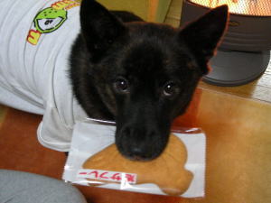 鳩サブレー咥えて全然離さないクロ。ほれほれ、ちょーだい。って追いかけてるところ。取られたくないからこんな顔してるの。渡してくれなきゃ開けてあげないよー。今日はワタシもイヌも調子が悪くて1日中のびてました。でも夜にはみんな復活。その証拠に今サブレーをサクサク食ってます♪笑実は最近変えたフードが気に入らない模様のクロさま。断固として食べない・・。何にも与えないでお腹を空かせてなんとか食べさせる。お医者に進められて変えたんだもん。クロのために変えたんだもん。維持でも食べてもらわないと困るんだもん。こりゃ長期戦だ。根気根気・・と。意外と頑固なクロにポチってしてね。