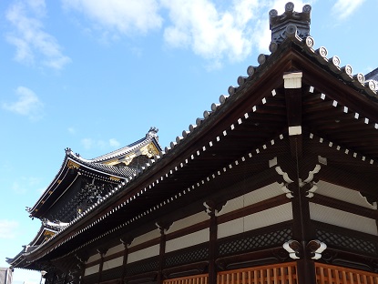京都で大すきな場所のひとつ、東本願寺日本の建築美ってやっぱりすごいと想う先日、久~~しぶりに友達と会ってきました。京都駅で11時に待ち合わせ。でももう一度、京都四条通にある手芸店の「ノムラテーラー」さんに行きたくて、ちょっと早く家を出て、友達と会う前に先に寄りました。京都を歩くの好きだし、地下鉄には乗らず、京都駅から四条通へ歩きました。地下鉄なら 京都駅→五条→烏丸四条へ、約5分。わたしが歩くと(時間がきまってるので早歩き)30分くらいでした。京都駅から烏丸通を北へ少し行くと、東本願寺が見えてきます。 「今、いのちがあなたを生きている」・・・ふむ、なるほど!わたしが生きていると言うよりも、「いのち」がわたしを生きているとなると、今、こうして毎日すごしていることが、とても尊いことのようにおもえてきますね。すごくありがたーい気持ちになる。青い空と、松の緑と、白い壁、灰色の屋根。日本の風景だな。東本願寺に入ってみると、広い。何年ぶりだろう、東本願寺。京都に住んでいたころ、通りかかって時間があれば、ここでよくぼーっとしていたものだけど実は昔、元彼がここで働いているときいてからなんとなく行けなくなっちゃった。なんとなくね・・・って、こんな情報いりませんね、えへへ。この本殿へはいってみると、広い畳の間が広がっていて、自由に人が座っています。その日は、春分の日だったので、お坊さんのありがたいお話がされていました。聴いていたいけど、時間がないので少しだけ聴いてあとにしました。この本殿の廊下が、いごこちがとてもいいの!今日はとても天気がよく、ここから見る青空もとてもきれい。建物の内側の影になった部分が額になって見える向こう側はよりよく見える。先客がいた。 おじいさんが座っています。日差しがあたたかく、ここに座っていると まったり。おじゃまをせず、あちら側へ行こうっと光と影がつくりだす色彩、しみじみする。あたたかくて、ついここに座って、ゴロンっとなってしまった。つかのまのひなたぼっこ。そのときたまたま撮れたこの写真。このぼんやり感が、あたたかくひなたぼっこしてる感をただよわせてくれてるでしょ。扉に金の装飾。東本願寺はなごめます。京都へいらして機会があればよろしければのんびりしてみてくださいね