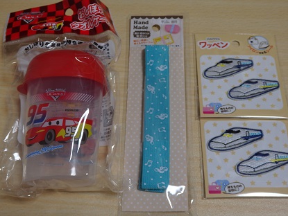 100均のSeria、わたしもけっこう使っています。ダイソーも実用的にいろいろそろってて便利だし、Seriaはまた違ったカラーでおしゃれ感もあり、あれこれほしくなっちゃう。今日は、幼稚園グッズで必要な物の買い足し。●おしぼり入れのケース●お弁当箱をとめるゴム●新幹線のワッペンおしぼり入れは、先日ドクターイエローの形のを買ったんだけど、洗い替えにもうひとつほしいなと思っていたところ、これを見つけた。ふつうに買ったらおしぼり1枚つきで600~700円もするから100均でもじゅうぶんだ~手芸コーナー見てたら、このゴムを発見。そういえばクレヨンの箱をとめるゴムがないことに気づいて。音符柄もかわいいし♪お弁当袋やランチョンマットのワンポイントに、新幹線を貼るのに。新幹線大すきな息子がこれでもりあがって、お弁当をよく食べてくれたらいいなー。 (↑もりあがるのか?笑)●キッズハンガー →自分で制服をかけよう●ホワイトボード用ペン あることのために(後日公開?)●上靴洗うブラシ入園するのになんだかんだ、いりますね