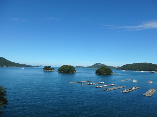 こんな景色の見える旅館に泊まりました。ロビーから撮った写真です。全室海が見えるそうな。泊まった部屋は駐車場の2階分上で、海がちょっと見えなかったけどチェックインしてから食事まで時間があったので(主人と息子)持ってきた水着に着替えて、ホテルの前の海にGOはじめての海に思ってたより水が冷たかったらしく、ちょっとしたらもう部屋に帰るって。 うーん、根性無し~そのあとお風呂入って食事してのんびりすごしました。2日目は、志摩スペイン村へ。朝ホテルでゆっくりしちゃってスペイン村にいられる時間が少なくなったけどけっこう楽しめました。スペイン村っていまいち・・(失礼)・・・ってイメージがあったんだけど、来てみたらよかった♪主人と息子の乗りたい乗り物にも乗ったしあちこち見て、パレードもみられたしなかでも気にいったのが、イルミネーションランド「くるみわり人形」くるみ割り人形のお話の展開をイルミネーションで見せてくれチャイコフスキーの音楽ととともに進んでいきます。楽しい2日間でした