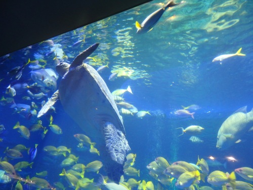 主人の夏休みに家族で鳥羽と伊勢志摩に行ってきました。まずは鳥羽水族館へ。 小学生のころは毎年夏休みに家族で車でいってました。 入ると、大量のいわしがぐるぐる泳いでるのと、ジュゴンがいるのを一番覚えているんだけど やっぱりぜんぜん違った建物になっていましたね。もう20年以上行ってないから当然だ。すきとおるブルーと魚の色がきれい魚以外のコーナーもあって。赤いカエル青いカエル。青いカエルなんて、ちょっと宇宙人チック★ほかにも黄色いカエル、白いザリガニなんかもいましたよ。川のコーナーには、赤い鳥や、カピバラが。 見つめあってる? 2匹いますカブトガニ横から見ると、足が太くて!何本もうまいことぞろぞろ動いてる。こんな、へんな笑ってるような顔の魚も。・・・なんだか、水族館の王道よりもへんな生き物を載せちゃったので。続きは後半へどうぞ♪ 水族館の近くで、 ポストの上にラッコ