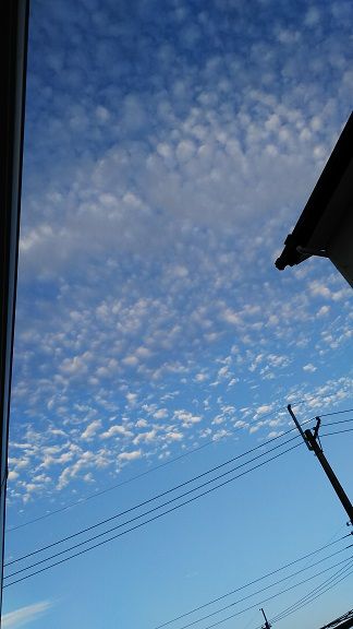 ベランダから撮った、もこもこふわふわの雲。水色の空。