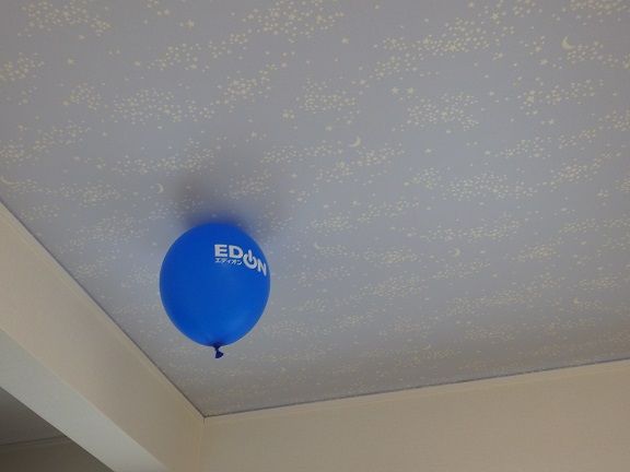 飛ばして遊んでたら、 フツーの風船が天井にくっつきました。