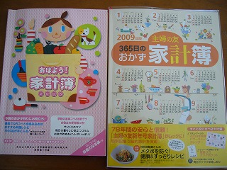 家計簿をつけているんだけど、だいたいは雑誌のおまけをつかっていて「おはよう奥さん」についている家計簿こちらは、自分で日付や費目を書くので、大まかに管理できてここ数年愛用「主婦の友」は去年廃刊になってしまったので、家計簿は900円くらいでも日付も費目も書かれていて細かく書くけど管理しやすい。今年も、すでに「おはよう奥さん」を購入していたんだけど、今年こそ節約を意識して、買いなおしました。これなら日々の無駄づかいを減らせるかな・・・・・