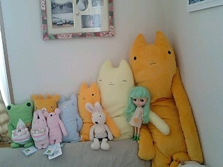 あ。この日記を読む前に今日の日記についての注意事項をどうぞ♪(笑)つくね家の癒しのスペースに新しい住人がやってきた♪ベビーはとっても彼女がお気に入り(*´∇`*)彼女の名前は妖精さん。本当の名前が長くて覚えられないからそう呼んでいる(笑)以前からみちぽんさんの日記で興味があったブライス。妖精さんがかわいかったのでお姉さんも迎え入れました本当はカスタムにも興味があって自分の好みにカスタムしようと思ったのですが、、初めてうちにやってきた妖精さんに手を加える事ができなくて、、ポイントを使って比較的安く手に入れたお姉さんをカスタムしようかと( ̄∇ ̄;)でも、手にするとどうしてももったいなくてカスタムできないなぁ。。。(笑)、、って事でカスタムは諦めてお洋服を作る事にしました(*´∇`*)洋服を小さく作ればいいんだもん♪ちょっとしたハギレで作れるし縫う場所が少ないし♪手始めに一番簡単に出来そうなワンピースを♪。。。と、思ったのですがその簡単な洋服でさえ、、丸1日費やしましたヾ(*`Д´)ノ「おぽ」と一緒♪ちなみに、、このチームフモフモの「おぽ」はよく2号(猫)の標的になる。。。ねずみに似ているから本能的にか。。。?それとも、、ねずみ嫌いのアズくんに命令されてやってるのかーーヾ(*`Д´)ノ(笑)。。。何気に昨日キッチンの床にポロリと転がっていた時はビックリした!( ̄∇ ̄;)どんどん「つくねの癒しグッズ」が増えていく。。。こんなに癒しを求めている私は病んでいるのか。。。。?そう思いつつ、ズラーっと並んでいるチーム癒しを見るとほっこりできるのであった(*´∇`*)