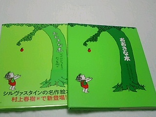 皆様、こんにちは。今日は「つくねが絵本について熱く語る」の「第一回」です。かなりウザく長文になっているので軽くスルーして結構です(爆)・・・・・・・おおきな木私はこの絵本があまり好きではない。数年前に本屋さんに置いてあったのを見て即買いした絵本だった。 レビューを見るとこの本がどんな本なのかわかるはず。感動、感動、と、絶賛の嵐。有名な絵本なので内容も知っている人も多いはず。ざっくり言うと小さい頃から一緒に遊んでいた少年と木。木は少年が大好きだった。少年も木と一緒に遊んでいると楽しかった。木は少年に自分のできるすべての事をしてあげる。無償で。少年が喜んでくれる。少年のうれしい顔を見る事が木にとって幸せな事だった。少年は大人になって 欲しがるものがどんどん変化していく。それでも木は少年の喜ぶ顔が見たくて身を削ってでも少年に与え続ける。無償の愛。母性。何の見返りも求めない愛。その素晴らしさ。それを感じて「感動した」 と 言う人はこの本に涙するのだろうか。。。。?ワタシニハ ソレガワカラナイ。私には子供がいないからだろうか?私の母性が足りないからだろうか。。。?私が私利私欲に満ちているからだろうか。。?私がこの絵本を読んでの正直な感想は「この少年にイラっとする」だった(爆)自分が欲しいものを与えてもらう。少年がしている事は与えてもらう行為ではなく木から奪う行為ではないか?くれることをわかっていて欲しい時にやってくる。なんて心のない少年なんだ??しかも少年は欲しいものがある時にしか訪れない。与えることが無償の愛なのか?しっかも 最後には年老いて何もいらない、と言った。欲しいものがなくなった、と。ブツブツ、、、←言い出したらきりがない(笑)あぁ、、、自分の心は曇っているのだわ。。。シクシク数年して先入観を捨てて読んでみた。「この木が少年が与えているのは 惜しみない愛情で。 でも 少年が木に与えているのは一瞬の幸せ。 それでもいいと思える木は健気なんだなぁ。。。」と、思えるようになった。←心も体も時間が経って大きくなったらしい少しやさしい気持ちで読めたかなぁ。。。。?でも何度読んでも 少年に対しての感情はかわらない。それでもいい。そう思うのが無償の愛なら私はそんな愛なんか持ち合わせてないし。私は 好きな人の喜ぶ顔が好き。自分にできることはしたいと思っているし。でも一方的な感情はイヤなの。なにかたくさんあげたらほんのちょっとだけ相手にも望む。その「ほんのちょっと」が 私の大きな幸せになるから。モノを返せという訳ではなくて、、、。時々思い出してくれるだけでいい。元気にしてるかな?って思ってくれるだけでいい。そんな ちょっとの思いをくれたら私は 幸せって思える。少年は木を事を少しでも考えていてくれたのだろうか。。。?文章からではそれが感じ取ることができなくて。だから少年に対して イラっとするのだ。あ、ここまで前振りだったのですが、、、(笑)その本が最近再販される事を知った。村上春樹の翻訳で。持っているのに購入したのは原作はとってもシンプルなもので。だからこそ翻訳する人の言葉のチョイスで同じ絵本でも受け取り方が違うだろうな。そう思ったからだ。ここから先はこの本を読んだことがない人じゃないとチンプンカンプンなんだろうけど。読んでテンションが上がったのでガンガン書きます( ̄^ ̄)b※これから買う とか これか読む と 言う人は この先は読まない方がいいかも。。 私の視点から話をしているので 先入観があると素直に読めないと思うので。。。。※私がこの絵本の軸と思っている部分。ここを読み手がどう受け取るか、だと思うのです。そこが決定的に違っていた。与え続けた木が少年の姿を見送る。そして思う。木はそれでうれしかった。。。だけどそれはほんとかな。これは「ほんだきいちろう」翻訳の文。これを読んで私は「んな訳ないじゃんーー(*`Д´)ノ」って思ってた訳で(笑)でも 否定も肯定もしないやさしい文章だと思います。だから「ほんとはどうだったんだろう」と色々考えてしまうというか。それでも木は幸せだったのよ、と、思う人もいただろうし私みたいに思った人も(世の中数人ぐらいは)いただろうし。原作文はこうなのです。And tree was happy・・・ but not reallyそのまーんま直訳すると「そして木は幸せでした・・・ でも本当は違った。」「but not really」 否定だ。それを知った時に少し心が軽くなった。「幸せと思ったのは本当なんだろうけど、でも、それ以上に寂しかったんだろうな。」と、私なりに納得できたから。そして お待ちかね村上春樹の翻訳。そして木はしあわせに、、、、 なんてなれませんよね。おぉーーー!!さすが村上春樹ーーー!!(≧∇≦)ズバっと否定してるーー!!!(≧∇≦)しかも 幸せじゃない、とかそれは違ってたとかそんな言葉ではなく「幸せに、、、なんてなれませんよね。」だ(笑)だから おおきな木(ほんだきいち