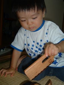 今日はチビ介の1歳6ヶ月健診に出かけた。私の住む市では今年から、1歳6ヵ月健診の受け方が変わった。市の保健センターで受ける集団健診(歯科・栄養育児相談)と、各自が医療機関で受ける医科健診(身長体重・発達健診)の二本立てになった。今日は医科健診。★医科健診はかかりつけの小児科へ。今回の健診の結果★身長80.3センチ 体重9550グラム 頭囲49センチ背が高いと言われて嬉しかった♪しかーし!授乳を控えるようにとの注意を受けてしまった。7月に熱を出した時にたくさん授乳して以来、最近のチビ介はオッパイ大好き。おかげでこちらも再度生理が止まるほどお乳が出るようになった。私は何度か乳腺炎になっているのでお乳は出る限り飲ませたい。搾乳が苦手で…。だからドンドン飲ませている。チビ介も私の洋服を自分でめくって飲んでしまうし、私も自然にあげてしまう。一日に3回はあげている。確実に。ところが、小児科の先生には少なくとも昼間の授乳をやめるように言われた。先生の説明によると☆母乳(もう栄養がない)のせいで鉄分の吸収が妨げられて栄養不足になりがち。☆だから身長のわりに体重が少なめ。そこまではいいのだが・・・☆授乳を続けると社会性が欠如してしまう。←我慢することを覚えないから。特にひとりっこだからお母さんにべったりで、欲しい時に欲しいものがもらえると思うようになる。と言うのだ!ちょっとそれは言いすぎじゃないかな?と思う。先生ったら、「友達のオモチャを欲しがったりするようなる」と言う。母乳とそれって関係あるのかなぁ?ひとりっこだからかなぁ?今のところチビ介は友達のオモチャをとりあげたりしない。それに、ひとりっこ=わがままなんてずいぶんナンセンスな考え方ではないかな?ひとりっこ=わがままでない証拠がココにあるぞ!私は3人姉妹で育ち、ダー介はひとりっこだけど、ダー介の方がずっと我慢強いしおっとりしていて私の方がわがままだぞ!(威張ることでないけど・・・)3人姉妹の私はいわば生まれたときからライバルが居る環境で、おかげで「前へ前へ」っていう図々しさが身についている。それにおやつだっておかずだって姉妹で分けたから、とりあいになることもあったし(こっちが大きい!とか)、そういうのって今だにぬけなくてガッツイてしまうことがある。一方ダー介は食べ物とか必ず「あき、コレいいよ」と言うし、ガッツク必要性がなく育っただけあって、おっとりしているし優しい。全然わがままじゃない。私だって、チビ介に兄弟をと考えているけれど、別にひとりっこでも問題はないと思っている。「欲しい欲しい」って思ってできるわけでもないし、それぞれの家庭に色んな事情あるわけだし。そうそう姉の子ども、ゆうにいもひとりっこだけどスゴイ優しいぞ!私の知っているひとりっこの友達は、自分に兄弟姉妹がいないからって友達をすごく大事にしている。私はいつも姉がいて、とても仲良しだから、正直言うと子どもの頃、「友達は足りてます」みたいな気持ちでいた。年子の姉「のんちゃん」が友達みたいだったから、のんちゃんが居ればいい、みたいな気持ちもあった。幸い、すごく良い友達に恵まれたけれど、「友達欲しいなぁ」と思ったことない。それって傲慢だよね。待てよ。書いてるうちにひとりっこがわがままじゃないと立証するつもりが、単に私がわがままマイペースみたいになってきた(笑)話は戻る。授乳に関しては、虫歯の問題もあるだろうから、少なくとも昼間の授乳は控えるようにしようと思う。そして、生活のリズムを整えて3度の食事を充実させて・・・・ふぁぁぁ、課題山積み。集団健診での育児相談でも注意されるんだろうなぁ・・・。チビ介ごめんねー。ママが悪いのだよ~・・・。木の包丁で木のオモチャ(食べ物になっている)をザクザクするのが大好きなチビ介。ちょうどホホちゃんママさんからバナナとりんごも戴いて大喜び。先日ホホちゃんママさんから戴いたカウプレの中身はホホちゃんママさんの日記でも紹介されていますので、良かったらのぞいてみてください♪