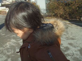先日ネットで購入した公園遊び用ジャケットが届いた!実際に届いて見たら、ちょっとイメージしたブラウンとは違った~!けっこうハッキリしたブラウンで、絵の具の茶色に似ている。(ブラウンだからそうだろうよっってツッコミ入る?)ビビッドすぎてびびった私・・・。お部屋で着たらちょっとびびった。うちの部屋の色合いが薄い色(ベージュ、ホワイト)でまとめてる感じだからかな?さて、公園へ。ちょっと寒いけど行くよ!チビ介も大喜び!自転車に乗ると満面の笑み。お顔をくしゃくしゃにして笑ってる!(写真上段中)さて公園に着いた。不思議だね。公園だとそんなにビックリ色に見えない。砂遊びしても汚れが目立たないし、良しとしよう!丈が長いので防寒にもいいだろうし。ジャケットを買った時に、トレーナーも買った。黒!これまた汚れが目立たないように。黒のトレーナーはチビ介は普段は着ない感じ。とくに腕に入ったラインがジャージっぽくて元気印。けっこういい感じ!写真の下段右二つのトレーナーが買ったもの。真ん中の写真は、「わ!」のポーズをしてるチビ介。『おかあさんと一緒』の歌にあわせて踊ってる。最近、チビ介快調!食欲もある!おかげで私も元気。親子で食欲モリモリ。先日写真を整理して自分の顔にビックリ。丸くなった。ざわざわの森のがんこちゃんに似てる・・・(笑)いけいけがんこちゃーん♪それで、最近思うのだけど。私、やっぱり髪のばすよ・・・なんか長いほうが似合う気がする。長いほうががんこちゃんから離れる気がする。結局さぁ、キャラクターのルックスにうるさいわりには「グーチョコランタン」の三輪車を買おうとした夫の妻。私はグーチョコランタンな女なのよね。そういう人に選ばれたのだから。がんこちゃーん、なのよね・・・・。早く髪を伸ばさないと!