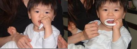 今日の写真は歯ブラシデビューの写真です。