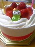 ありがとう、ダー介。日記の一番上の写真。バースデーケーキにつけた砂糖菓子はお店では「カエル」となってたけど、どう見てもガチャピン。だから、二人で選びました。私はガチャピンに似てるから。