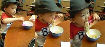 一番上の写真は今日二人でラーメン屋にて。この子、スゴイラーメン好きと判明。やはり私達の子だ…。食べないと思ったからささっと私だけ食べるつもりが…。帽子かぶったままだわね。