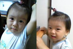 写真は前髪を留められてすっかりチビ子に変身のチビ介。