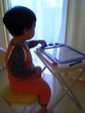 写真は起きてすぐに自分の机に向かうチビ介。