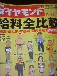 3連休が終わりに近づきました、、休みの間に、、あれをやろう、、あの本を読もうと、思っていたのに、、そうそう、今週号の「週刊ダイヤモンド」全業種給与一覧特集、、を、ネット喫茶で、ちらっと見て、今日、思い出して買いに行きましたら、、「売り切れです、明日、入荷しますが、」つくしんぼ「明日のは来週号でしょう、今週号の記事が読みたいのですが、在庫ありません?」3軒の本屋さんを、回りましたが、、ありません、、、遅かったかああ、、、、。