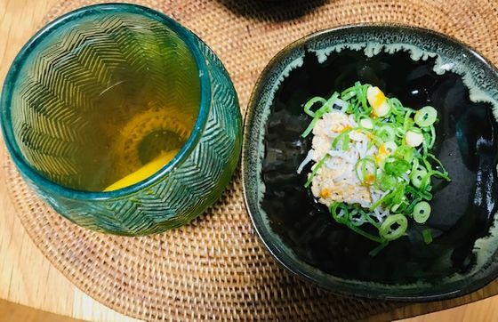 この後はしらすと細ねぎをトッピングした納豆と芋焼酎を飲みながら