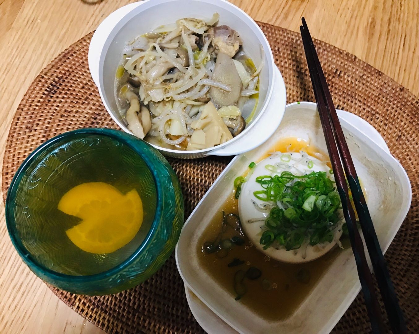 ​木曜日の家呑みは、筑前煮、餃子、カットダイコンサラダ、
